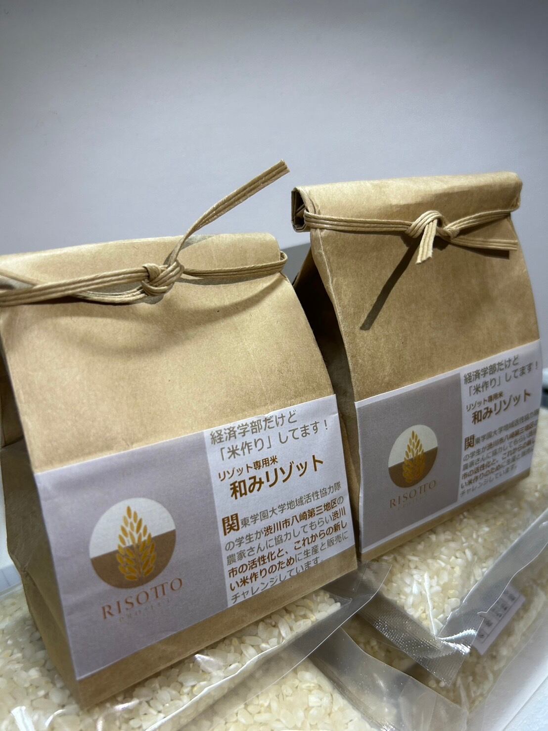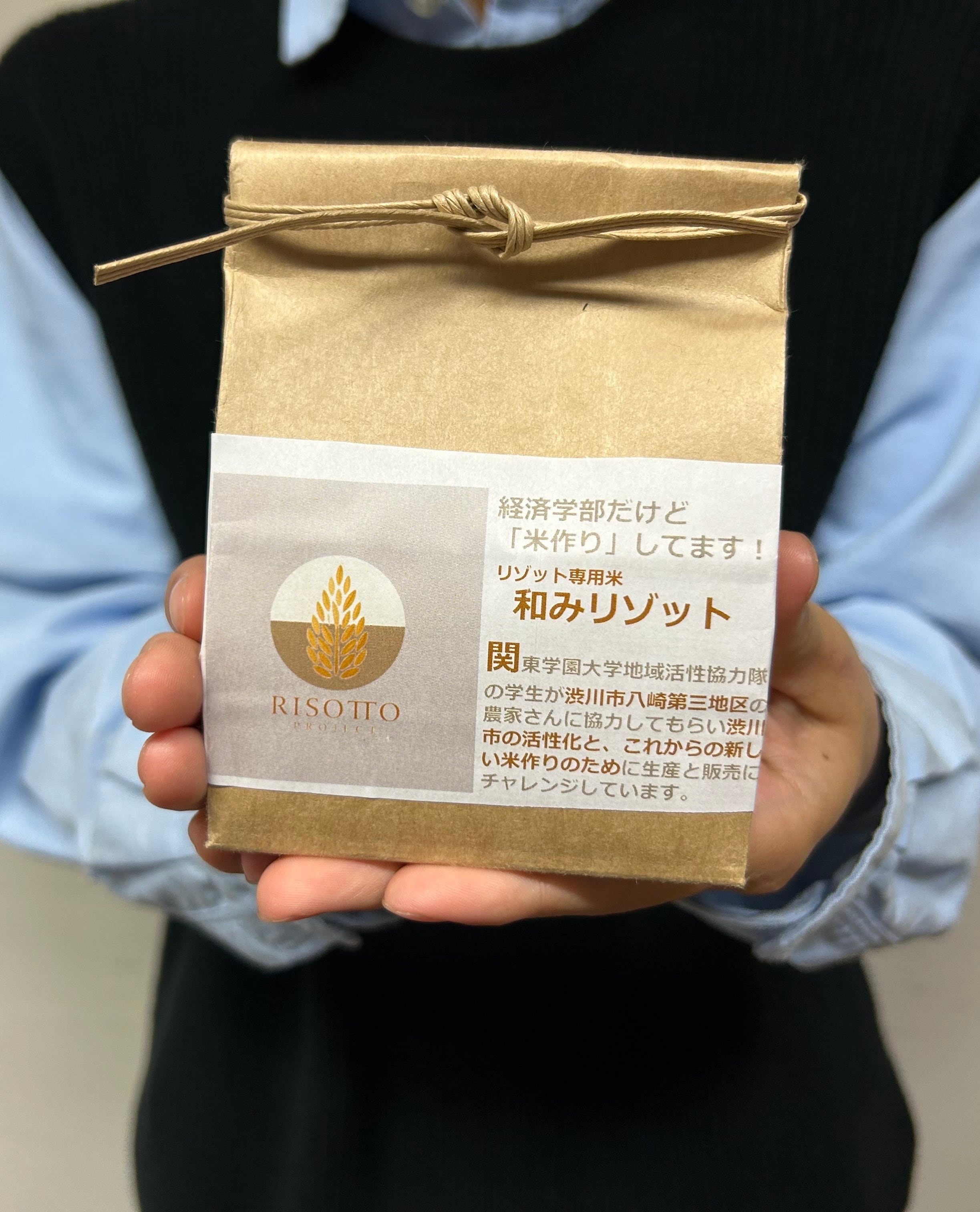 関東学園大学の地域活性協力隊(RCVサークル)でリゾット米プロジェクトという活動があり、群馬県渋川市八崎第三地区の農家さんと共にリゾット専用米を作っています。今年からの販売をスタートさせました。