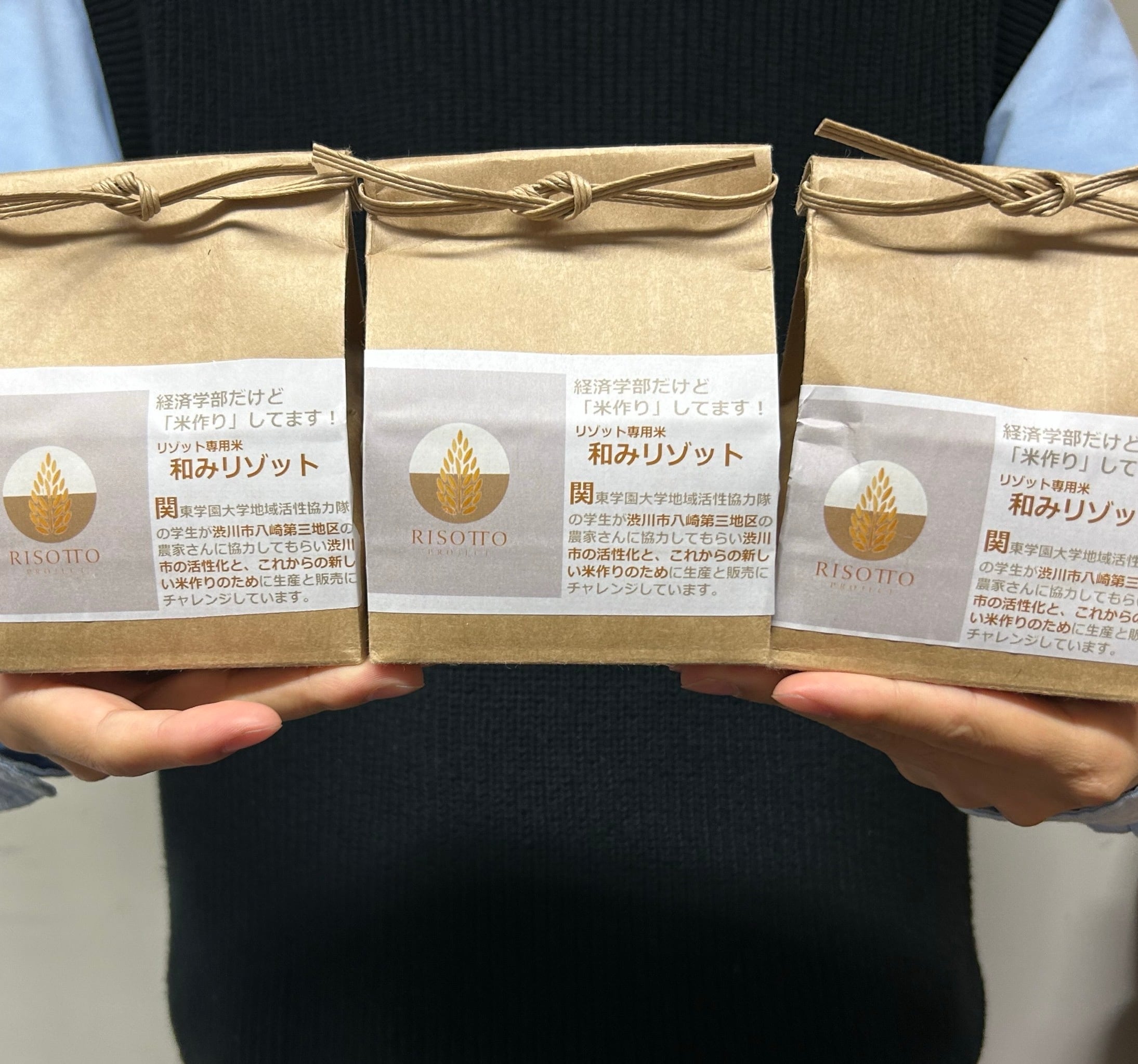 関東学園大学の地域活性協力隊(RCVサークル)でリゾット米プロジェクトという活動があり、群馬県渋川市八崎第三地区の農家さんと共にリゾット専用米を作っています。今年からの販売をスタートさせました。